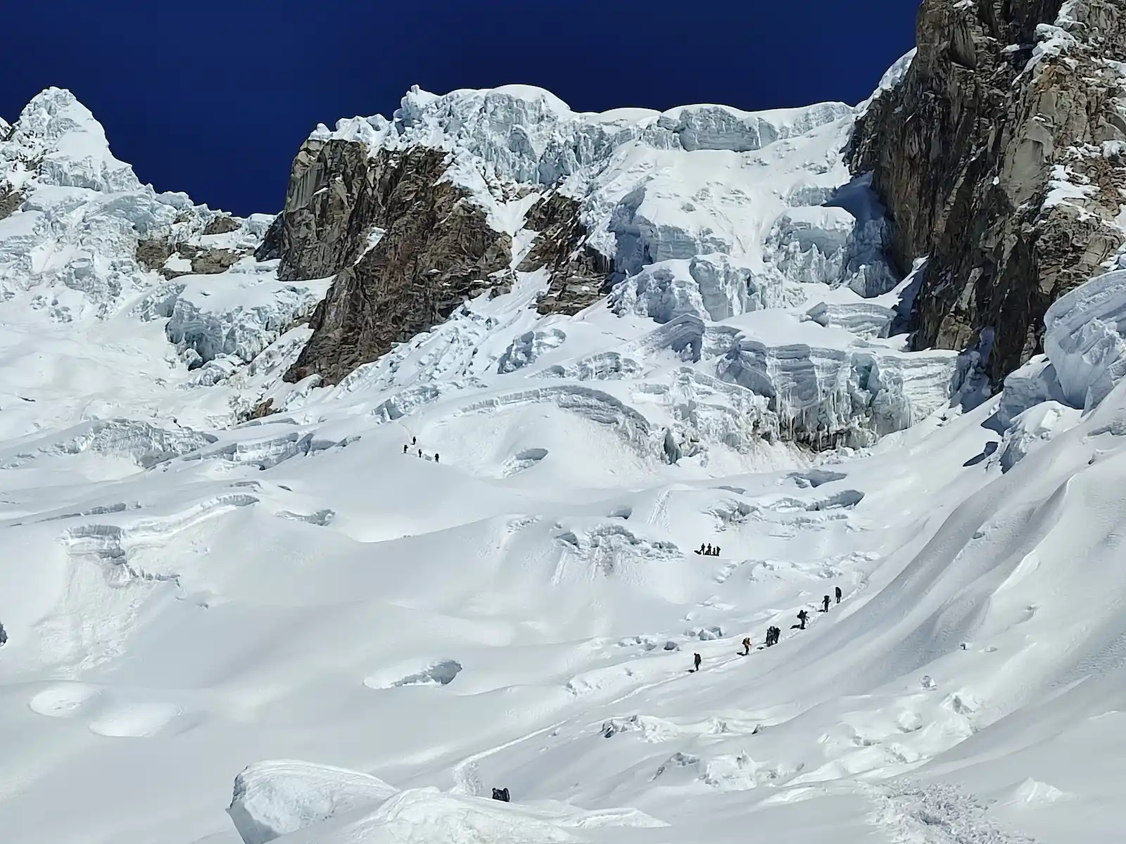 Early alpine start for the ascent of Nevado Ishinca. This glacier climb is perfect for acclimatization and technical preparation. After reaching the summit and enjoying panoramic views, we descend back to Base Camp.
