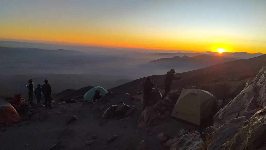 We leave camp at approximately 2:00am hiking uphill following a marked path that will take us to the summit and after a few hours of walking we will find snow (depending on the season). Once we put on our climbing equipment we will continue our ascent until we reach the summit. At the top we will have beautiful panoramic views of the volcanic mountain range and the scenic Misti crater. We will return by the same route of ascent until we reach the mobility and later to Arequipa.