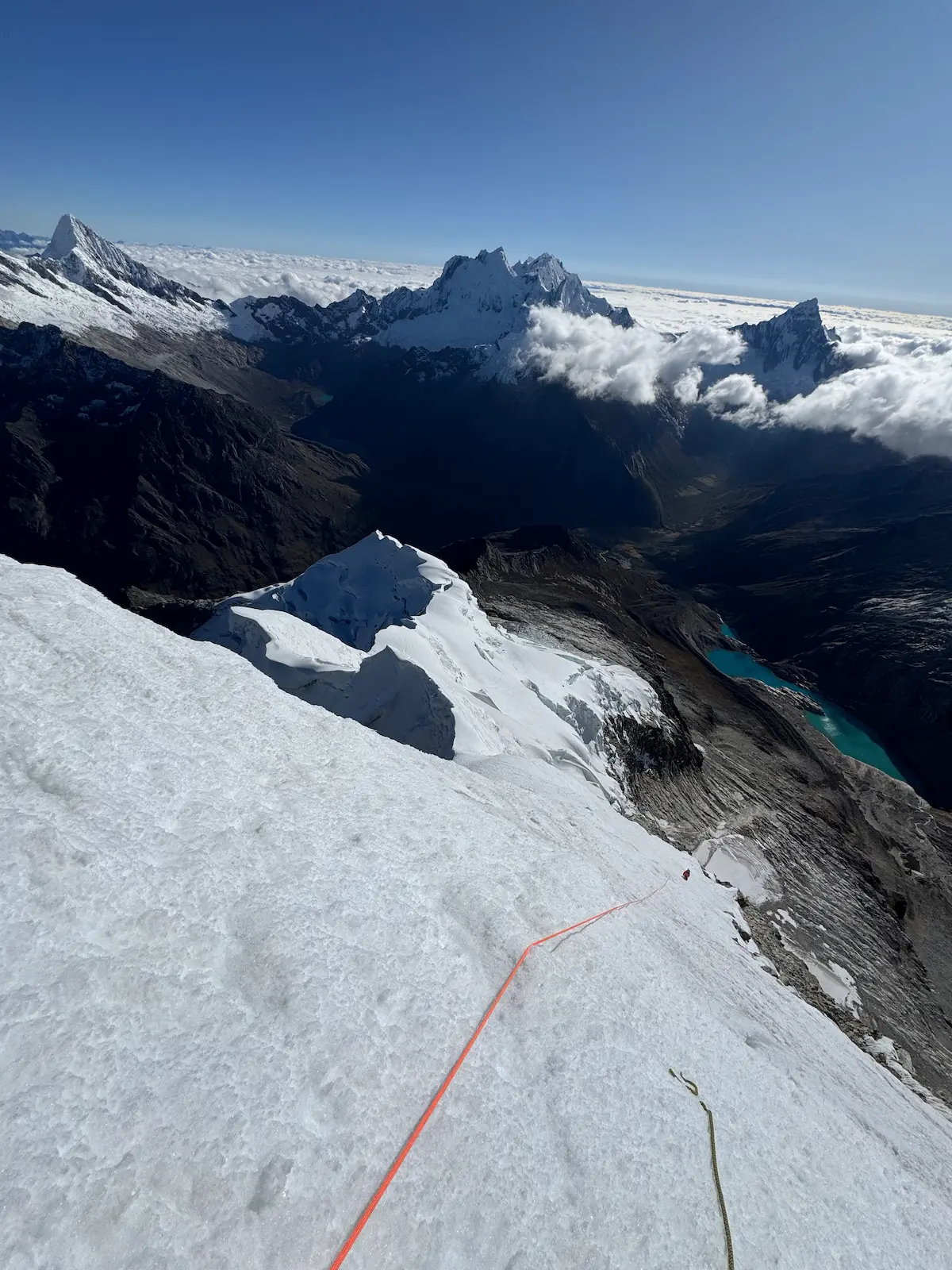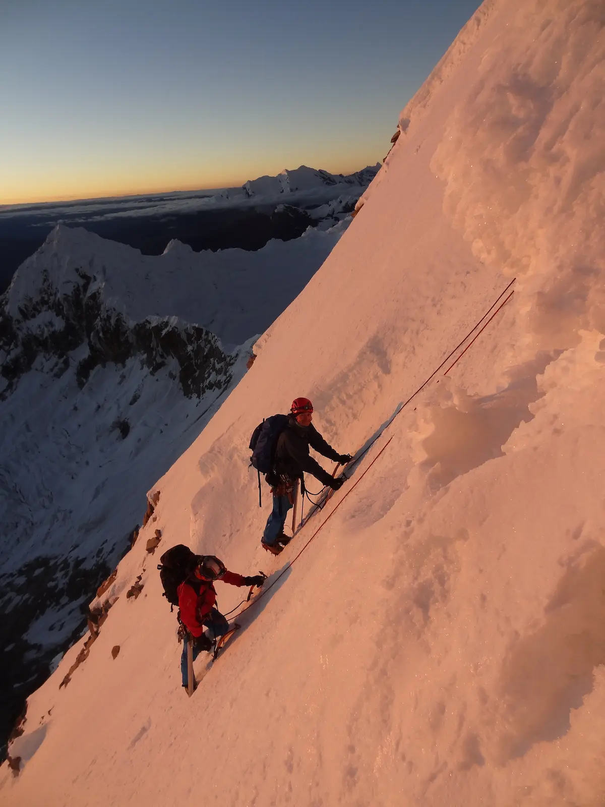 Off to an early start, we will gear up and head out around 1:00 a.m. The first part of the climb is to navigate 20 minutes through the moraine field making our way over rocks until we arrive at the glacier where we will begin our ascent to the summit from the SE side. We will descent by the same route of ascent, in lines of rappel to the moraine field. 9 to 11 hours approx. (Optional: return to Artesonraju base camp).