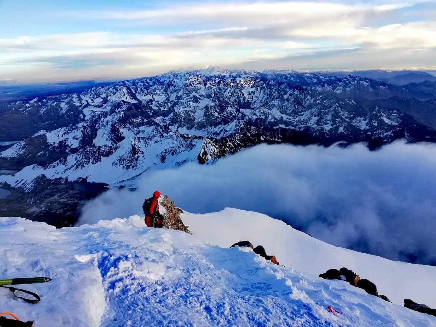 The Pequeño Alpamayo is located in the Condoriri massif, within the Cordillera Real and belongs to the department of La Paz, with an altitude of 5425 m. Named for its resemblance to the lesser-known face of the Peruvian Alpamayo, it is a beautiful summit because of its sinuous edge, which takes us to the summit.