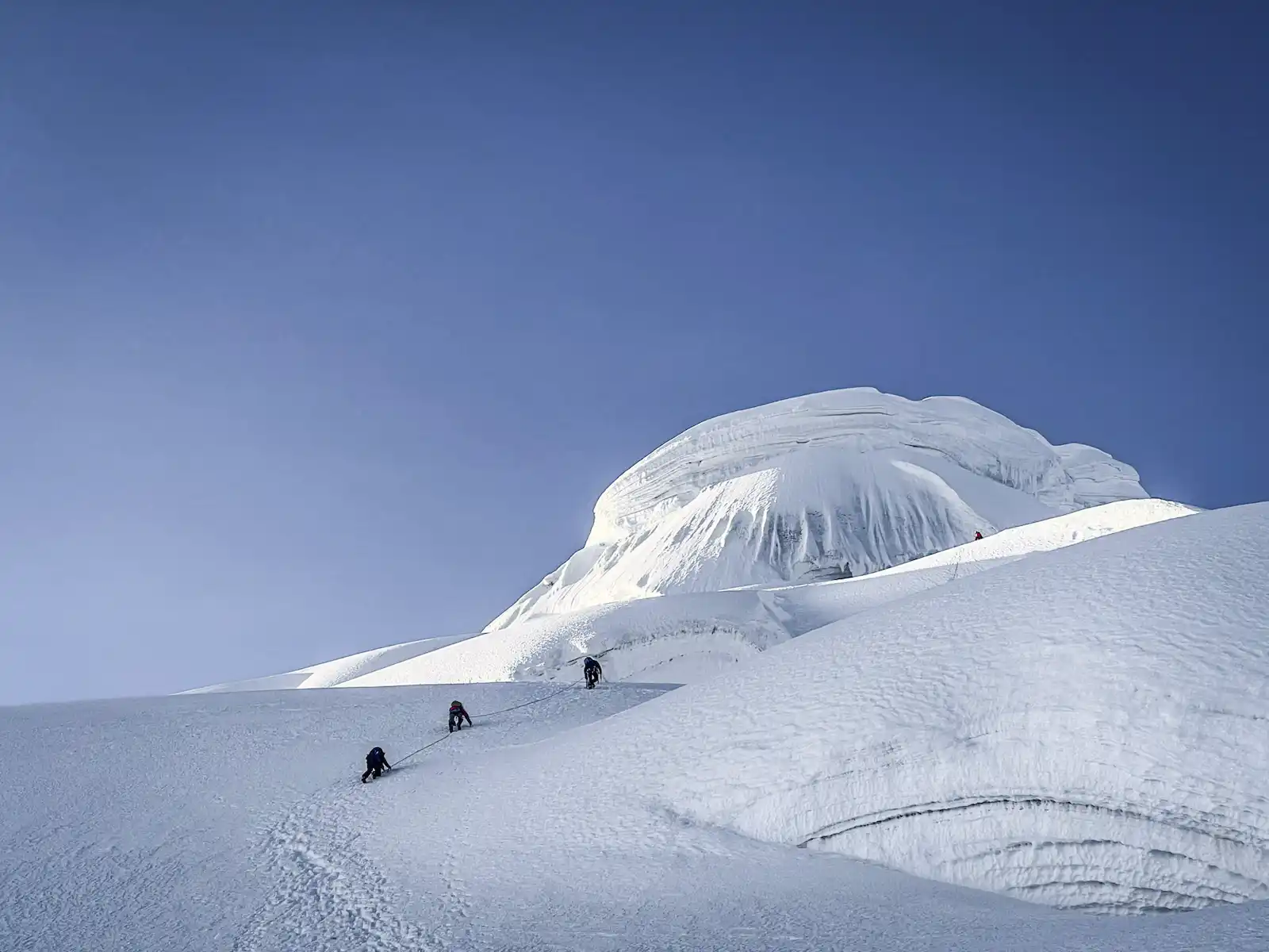 We will begin climbing at around 2 am towards the summit for about 6 to 7 hours. At the final point of the climb before crowning the summit we will reach a wall of about 90m that we will need to surpass and will make our climb a lot more fun. Once we reach the summit, we are met with stunning views of the neighboring mountain peaks that will be visible from different angles such as the Huascaran, Santa Cruz, Ranrapalca, etc. After a brief break we will return to the Morena Camp to pack our equipment and continue to the Base Camp.