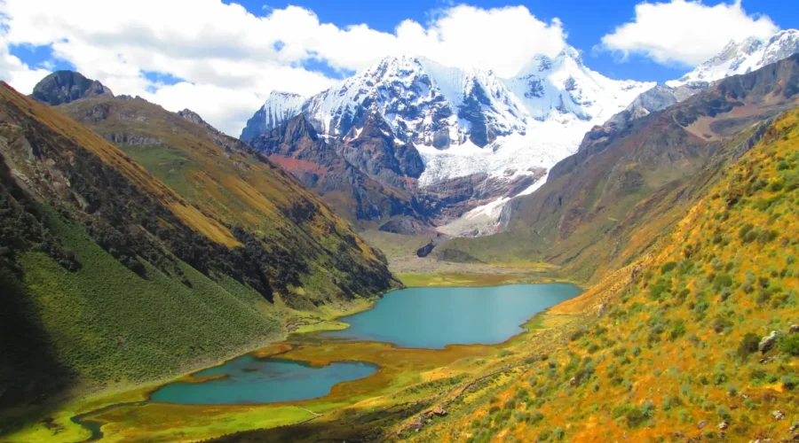 We will begin our ascent by a little visible way until arriving at the second higher step of the trekking Santa Rosa Step (5070masl) from where we will obtain beautiful panoramic views of the snowy ones of Yerupaja, Rasac, Sarapo, Siula, Ancocancha, Rosario, Tsacra and Huacrish. Then we will descend, passing the camp of Cutatambo (4265masl), finally, we will descend by the Calinca valley until arriving at the town of Huayllapa (3508m) (7 to 8 hours approx.).