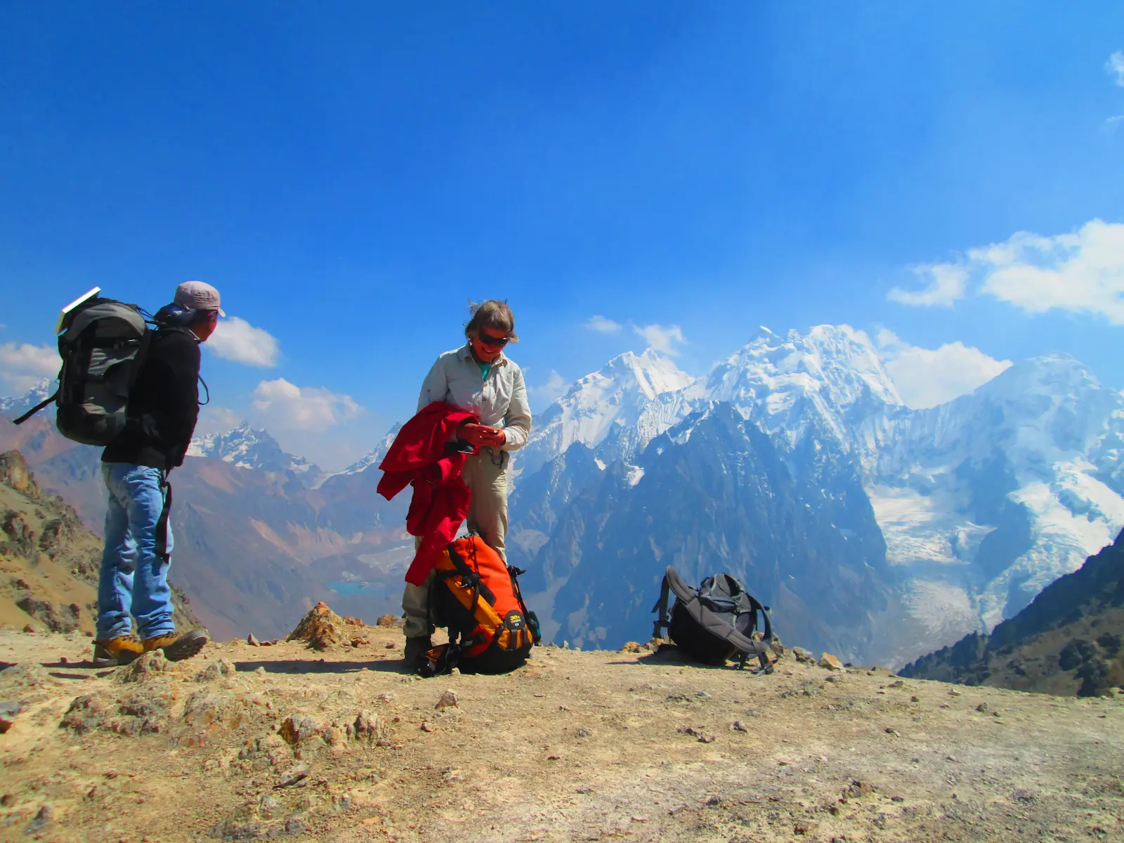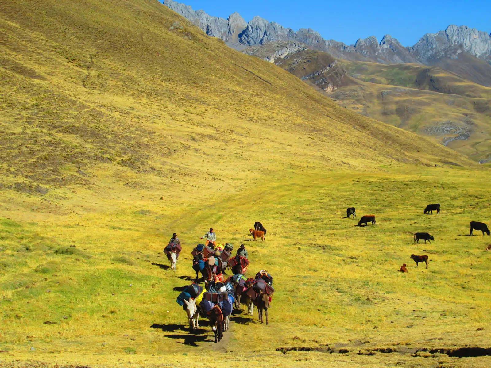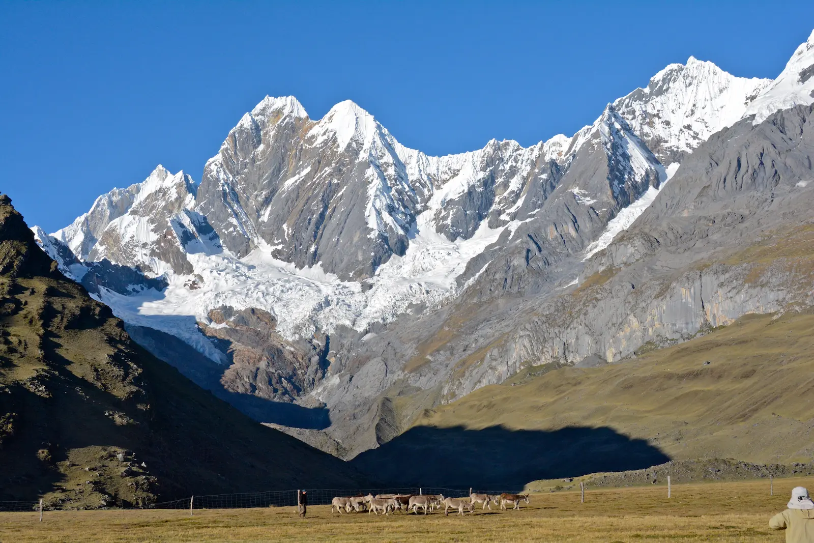 Climb to Santa Rosa Pass (5,070 m / 16,634 ft) with stunning views of Yerupajá, Rasac, Sarapo, Siula, and more. Descend through Cutatambo and the Calinca Valley to Huayllapa Village (3,508 m / 11,509 ft).