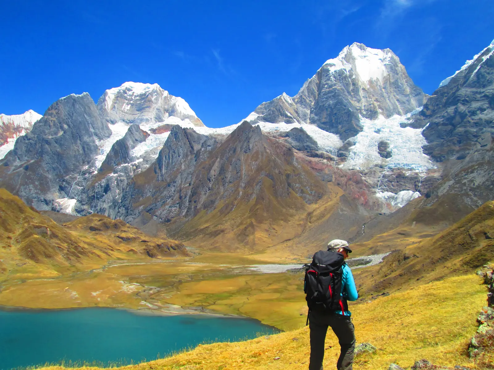 Ascent to Carhuac Pass (4,630 m / 15,190 ft) offering spectacular views of Siula, Yerupajá, and Jirishanca. Descent to Carhuacocha Lagoon (4,100 m / 13,451 ft).