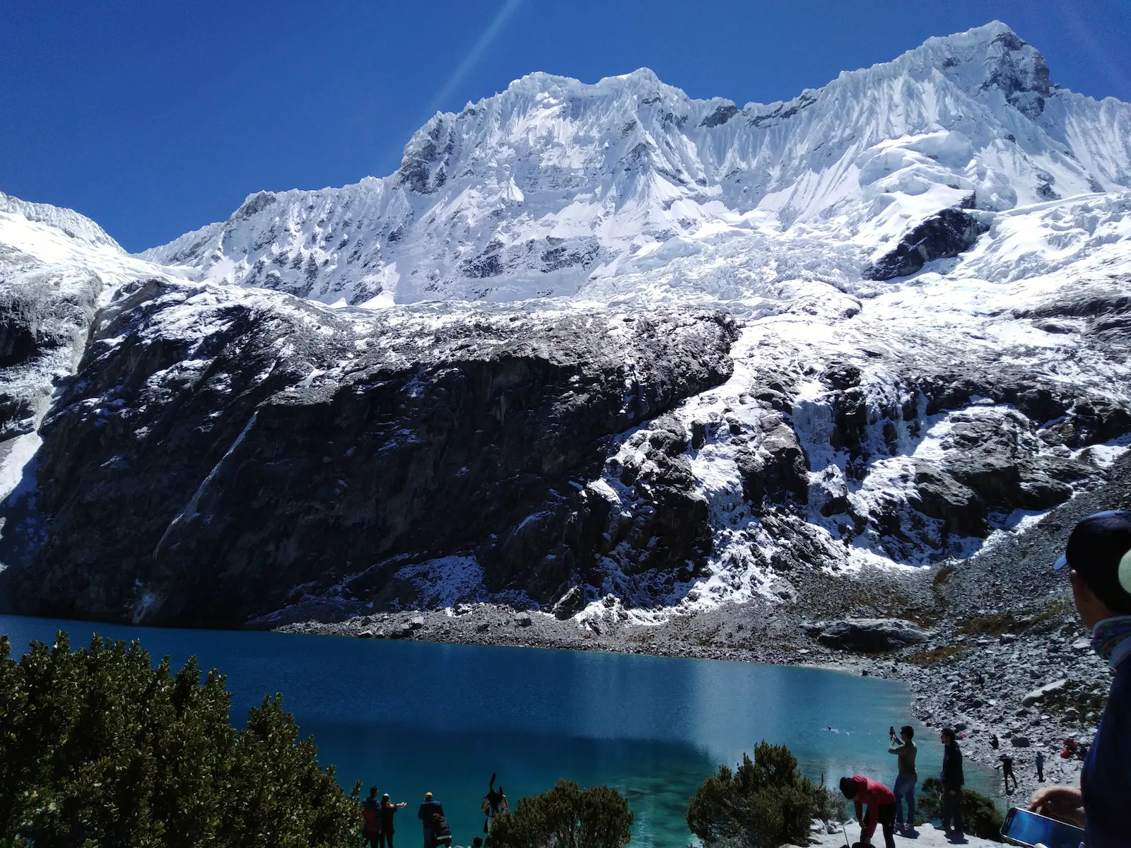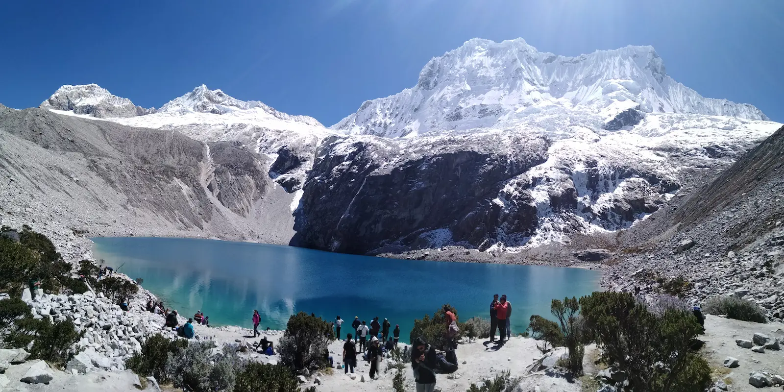 You have a panoramic view of the mountains of Huascaran, Chopicalqui, Pisco, Huandoy, Yanapaccha, and Chacraraju. The return is by the same route of ascent approximately 2 hours and a half.