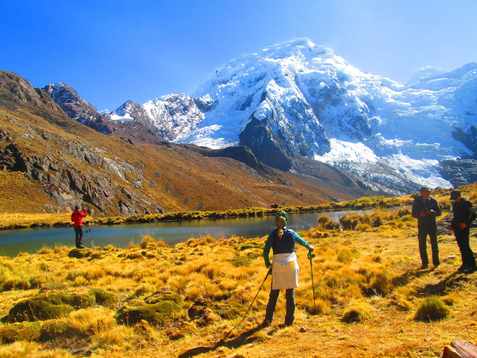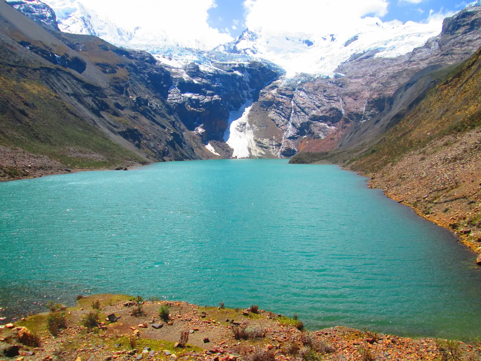 We will begin our hike up the valley, a trail that will take us to visit the beautiful Tullpacocha lagoon surrounded by the Tullparaju, Andavite and Chinchey snow-capped mountains. Then we will ascend in a zigzag towards the Cuchillacocha lagoon surrounded by the imposing Pucaranra snow-capped mountain, then we will cross to the camp where we will have an exceptional sunset.