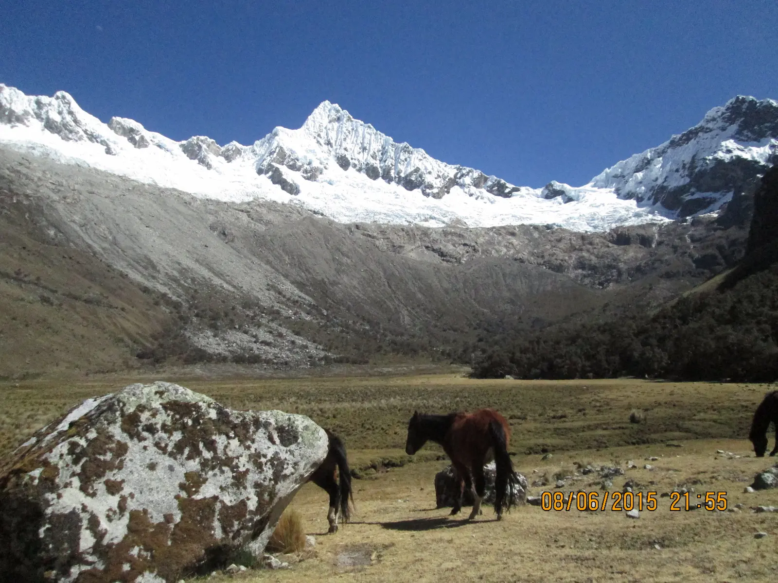 We will leave early in the morning and head down the valley through the Huaripampa village, passing through the unique Andean bushes and trees, finding picturesque villages of noble and humble people, arriving at the small village of Vaquería, where we will pick up the bus and say goodbye to the muleteers. Finally, the whole trip will be done by bus, passing by the Portachuelo pass at 5760 meters above sea level, we will stop to observe the Llanganuco ravine downstream, which has two beautiful lakes, these are the Chinancocha and Orconcocha lakes; we will also observe the Chacraraju, Pisco, Huandoys, the majestic Huascaran and Chopicalqui snow-capped mountains.