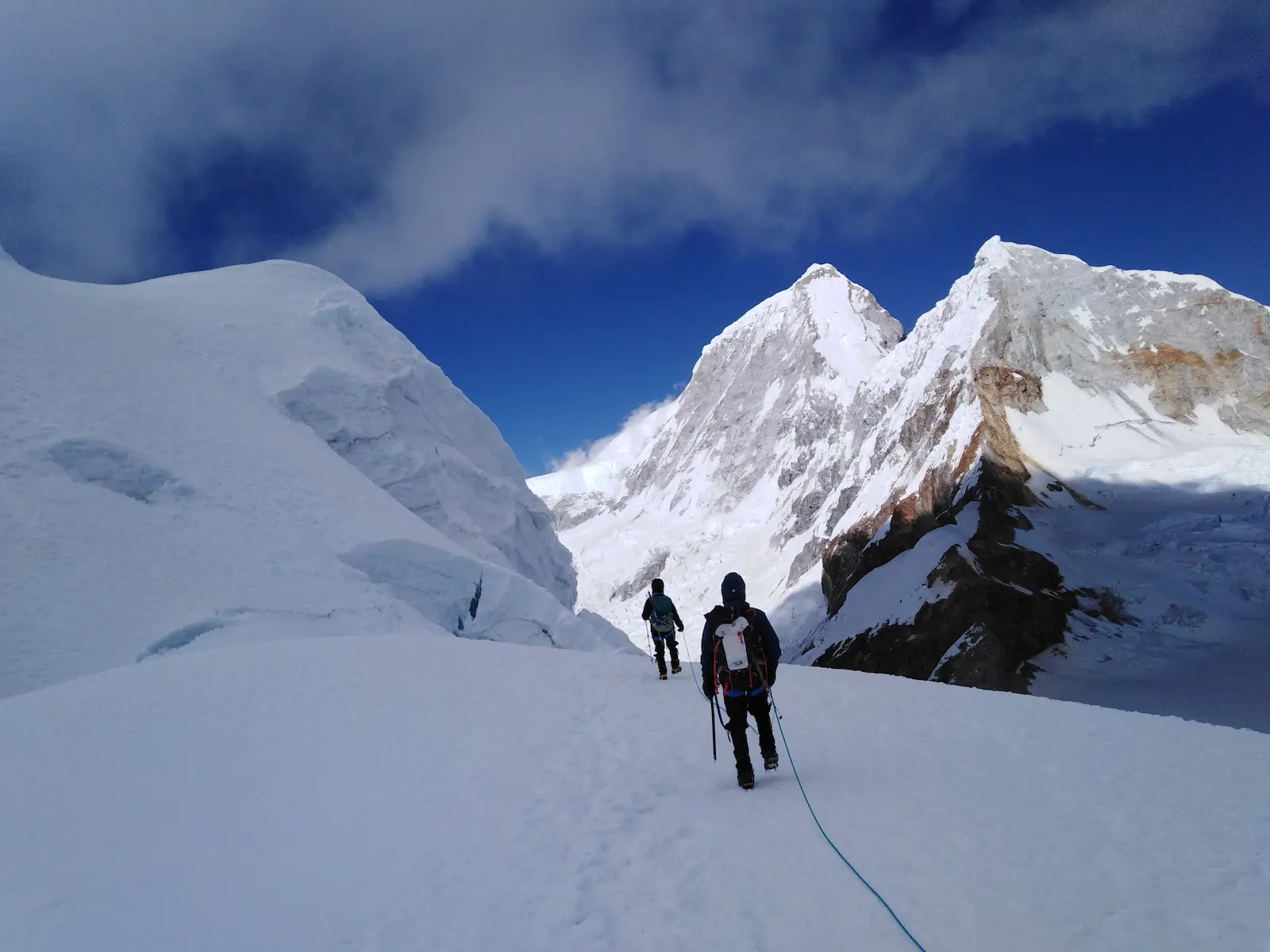 We will begin the hike at dawn towards the glacier where we will begin with the necessary climbing equipment, then we will ascend the glacier for approximately 5 to 6 hours, reaching the summit. We will enjoy the beautiful 360-degree views of different mountains: Artesonraju, Alpamayo, Caraz, Huascarán, Chopicalqui, Yanapaccha, Chacraraju, Brogui, Huandoys, etc. After a few minutes, we will begin to descend to the Moraine Camp, to dismantle the camp which will then be taken by the auxiliary personnel to the base camp.