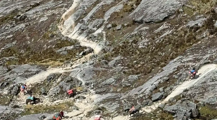Now we will continue the hike to the opening of the Pucaraju hill, from where we will observe the Taulliraju snow-capped mountains and other snow-capped mountains that are around the pass, we will continue towards the valley ravine below, descending the path in zigzag until our next camp in Tuctubamba.