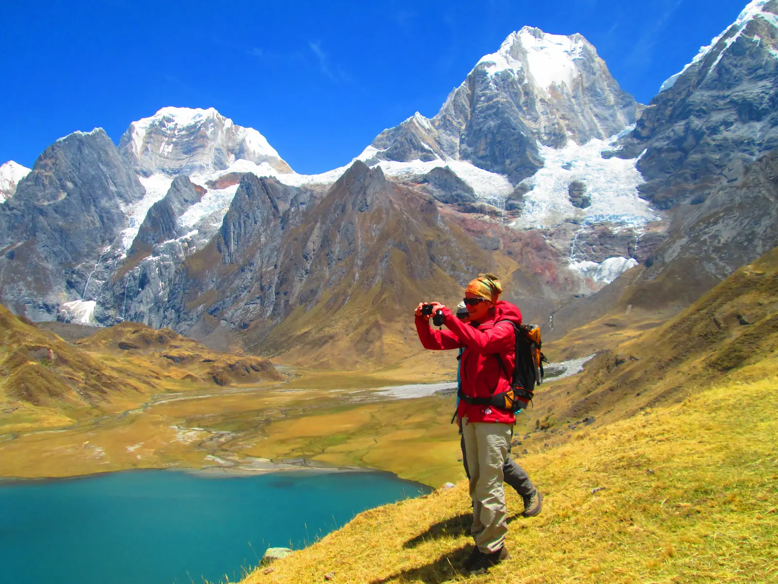 We will depart from our camp at 7:00 am then we will ascend toward the Carhuac pass (4650masl), with a spectacular view of the snowy Siula, Yerupaja, and Jirishanca, then we will descend until the lagoon Carhuacocha (4650masl), place where we will spend the night (4 to 5 hours approx.).